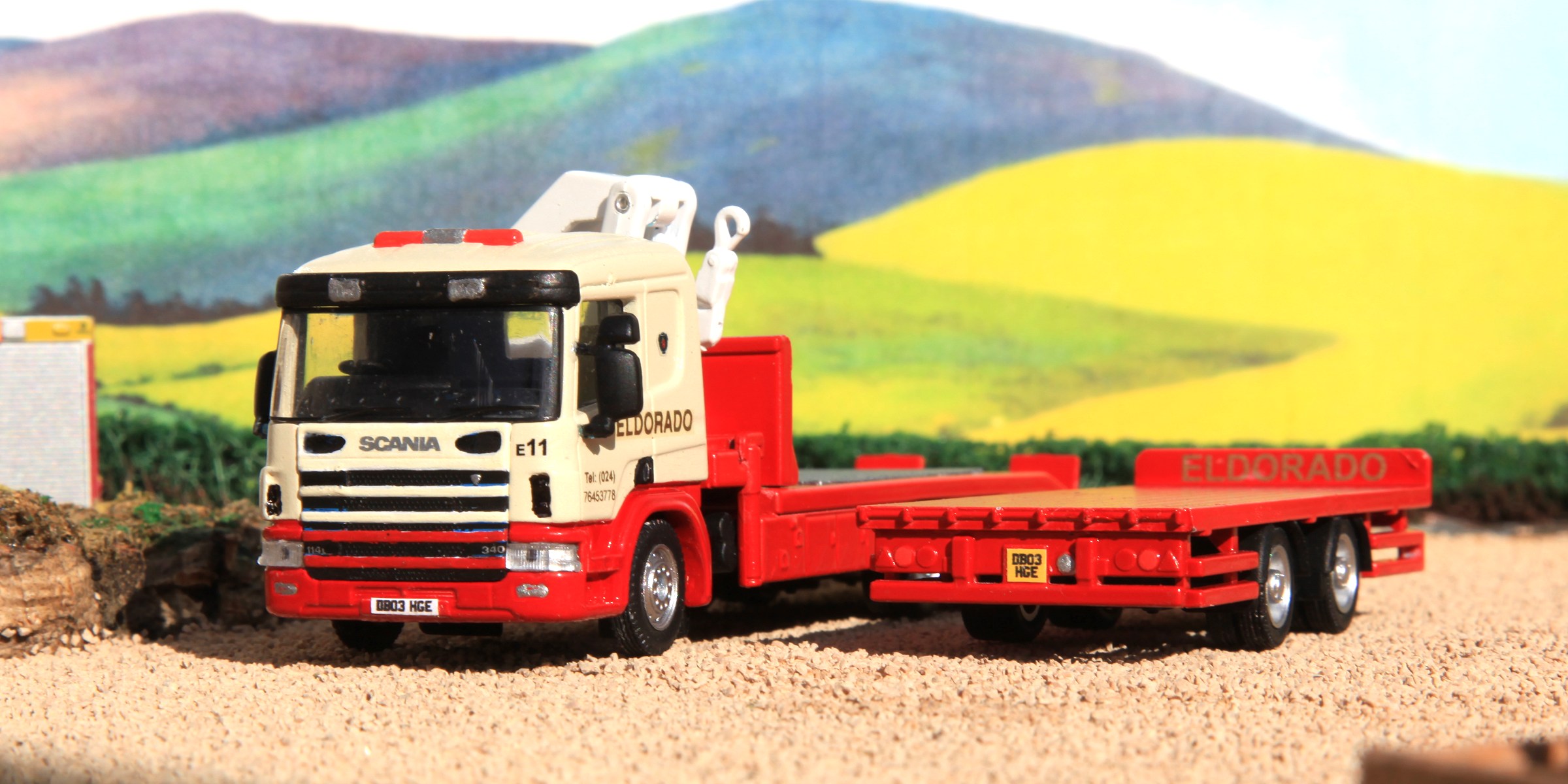 E11 (replaces previous E11). Scania P114 flatbed, new in 2003, and acquired in 2016. The JPM drawbar trailer came with it, but of course can be used with other vehicles as well.