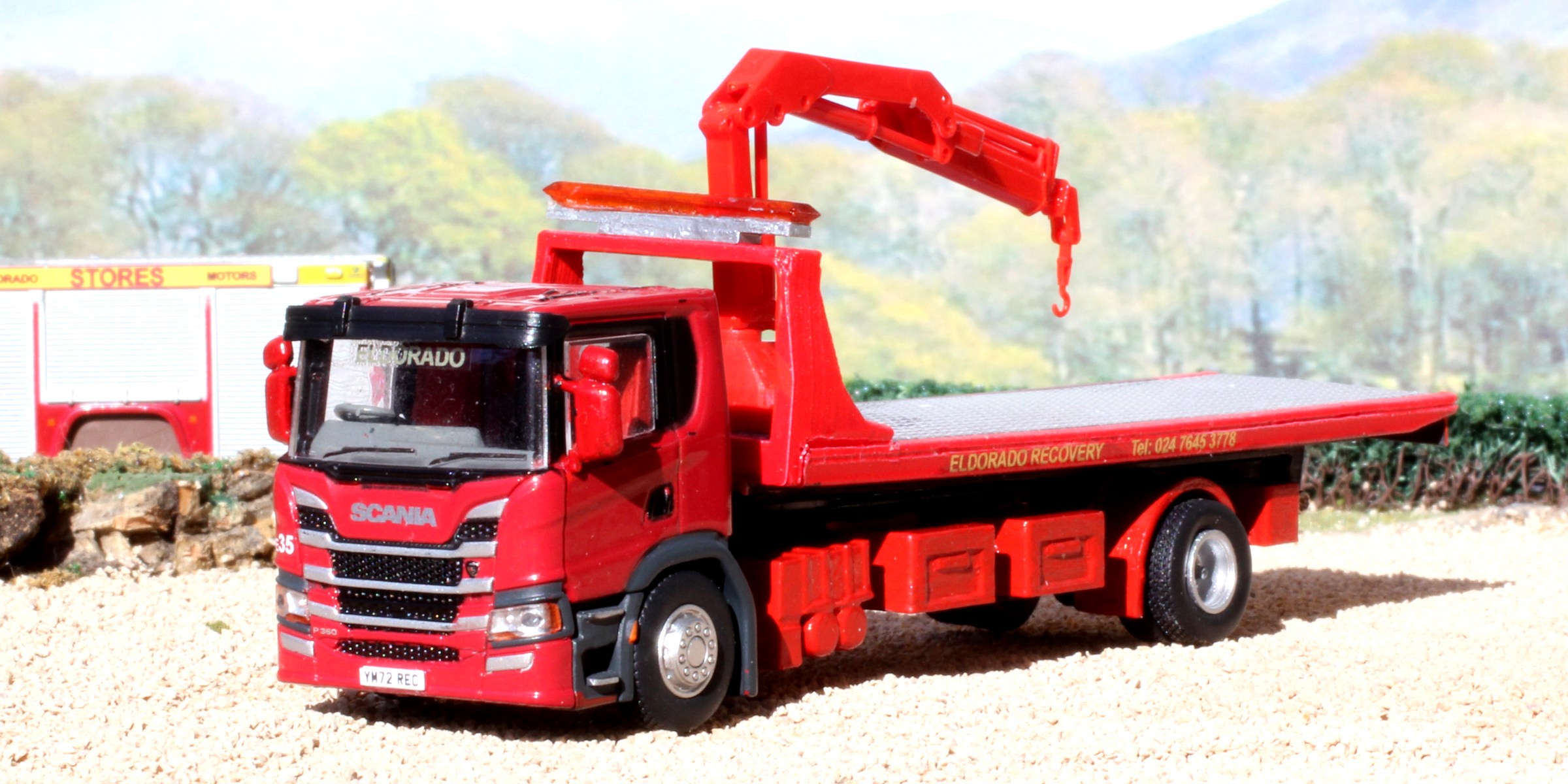 E35 (YM72 REC), a Scania P360LB4x2MNZ with Springfield Slide-Bed body and Hiab crane, acquired new in 2022.